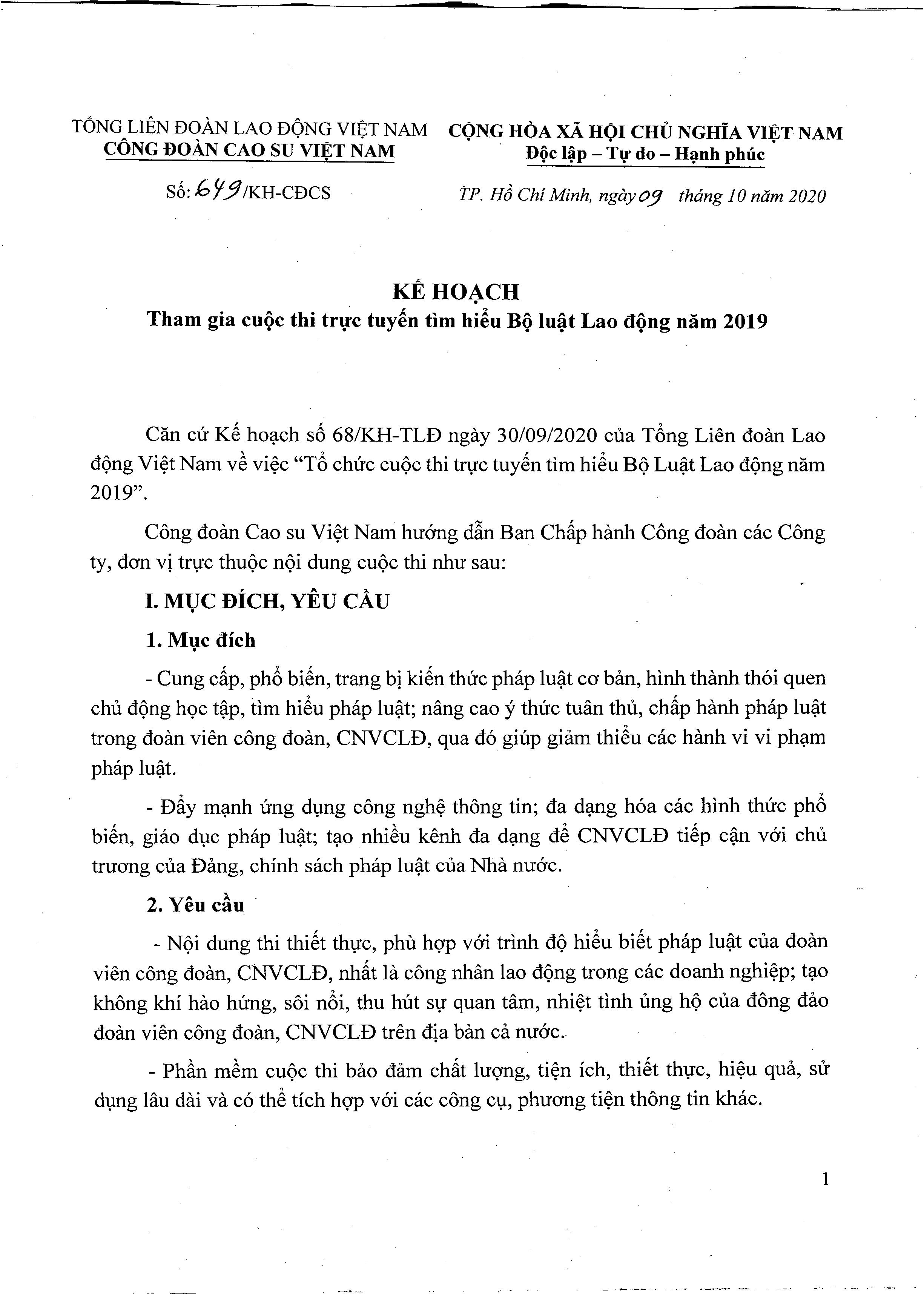 Kế hoạch tham gia cuộc thi tìm hiểu Bộ luật LĐ năm 2019
